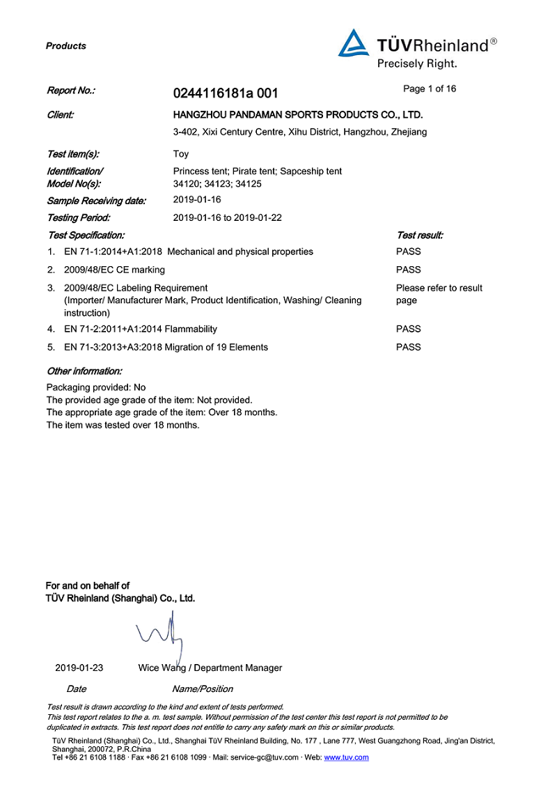 | Productie Capaciteit | (Product Naam)Camping Tent; (Jaarlijkse Productie Volume) 480000 Piece/Pieces (Product Naam)Beach tent; (Jaarlijkse Productie Volume) 200000 Piece/Pieces (Product Naam)null; (Jaarlijkse Productie Volume) null null |