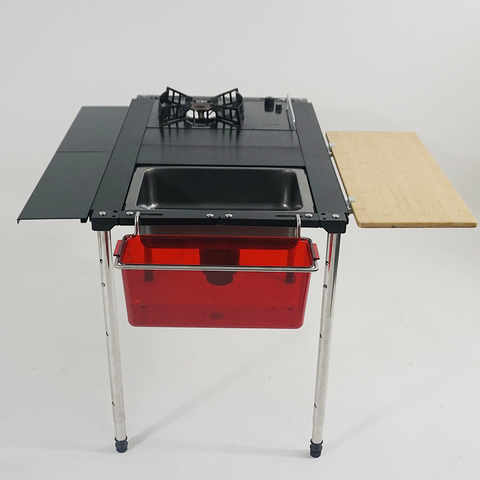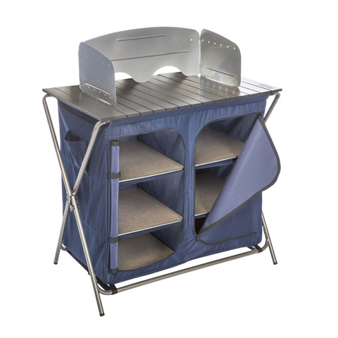שולחן מטבח נייד מחנאות אלומיניום חיצוני מתקפל עם אחסון